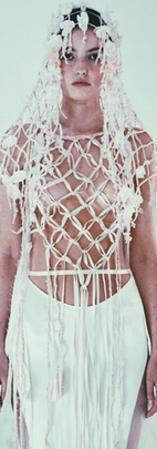 Silk organza scraps are meticulously collected by the r.l.e atelier team and transformed into 3D fabric yarns and structures using the 'Yuan 圆' knotting technique, first introduced in r.l.e's Spring/Summer 2024 collection.